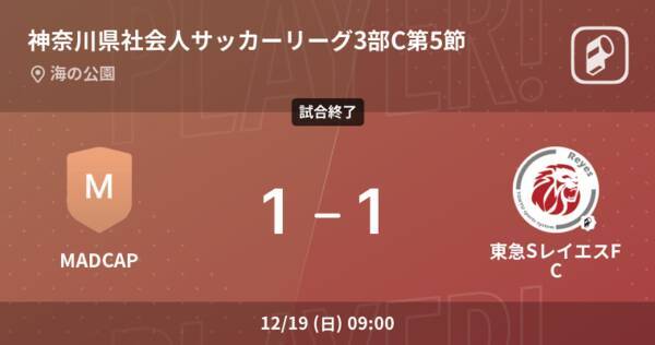 神奈川県社会人サッカーリーグ3部c第5節 Madcapは東急sレイエスfcとの攻防の末 引き分け 21年12月19日 エキサイトニュース